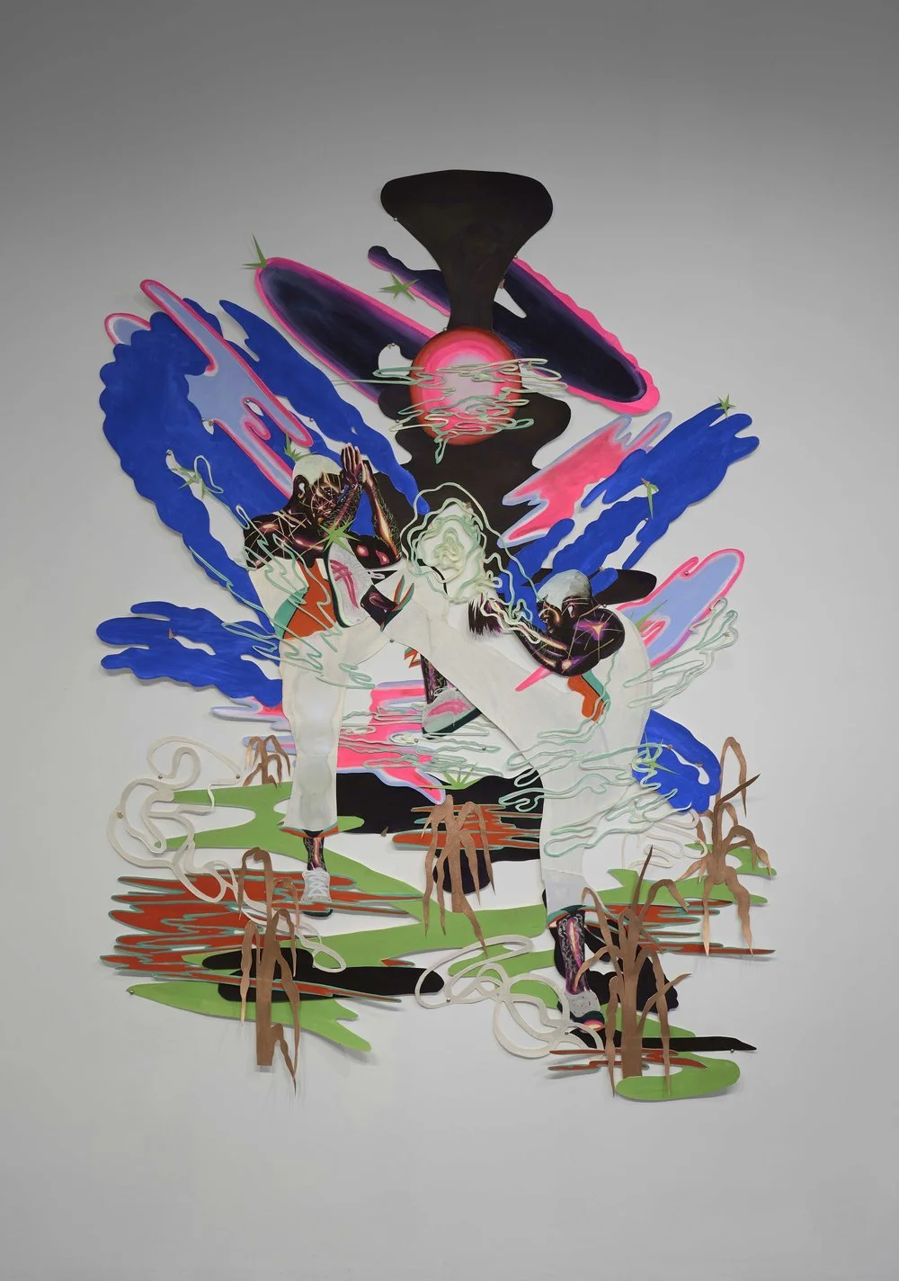 Khari Johnson-Ricks (b. 1994) is a multimedia artist whose practice includes works on paper, murals, independent publishing and black vernacular dance. In addition to Night Gallery, his work has been included in group at Jeffrey Deitch, Los Angeles; Center for Art Research and Alliances New York; and SCADMOA, Savannah, among others. He has created public murals for the city of Newark as part of Mayor Ras Baraka’s Model Neighborhood Initiative and Gateways to Newark Projects. His zines are featured in the library collections of the MET Library, the Whitney Library, and The MOMA Library. He lives and works in New Jersey.