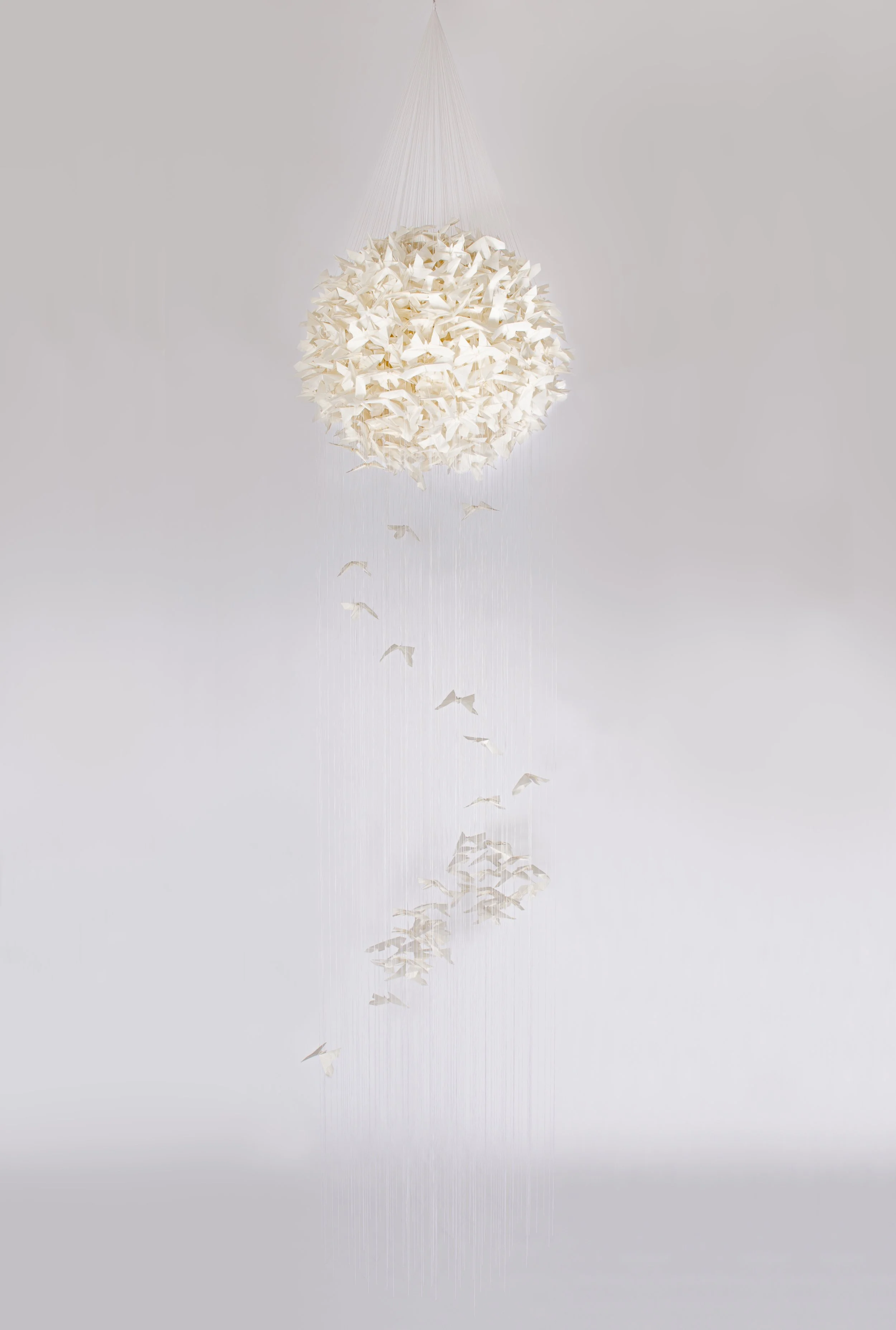 Tsuyu Bridwell, Sentôchô, Hanji (korean mulberry fiber paper), nylon thread, diameter 27.5 in, length 197 in